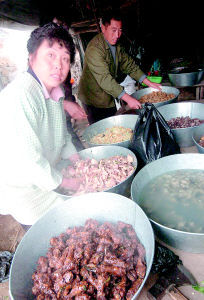 图解:舟山的饭店基本上半成品和成品、熟和生都放同一冰箱里,除了个别星级饭店外其他都不够卫生。还有那餐具,有几家饭店在消毒?不少消毒柜是摆设,里面都有蟑螂了,怎么消毒?还有小饭店有些菜就草草的洗一下有时候虫子,泥土都有,仍掉就是,一炒谁看得出来!至于冷菜,不少都是厨师直接用手拌出来的。