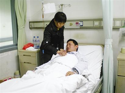 昨日下午,记者在同济医院,见到了伤者刘某(如图)。据主治医师黄教授介绍,刘某属强酸中毒,虽已脱险,但会留下后遗症,早期症状是胃穿孔,晚期症状是食道狭窄。刘某还需在今后较长时间内住院观察治疗。